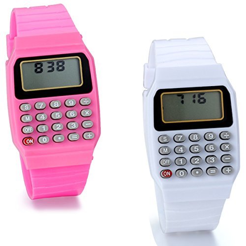 JewelryWe 2pcs Jungen Mädchen Kinder Armbanduhr, Studenten Digital Quarz Rechner Uhr Calculator Watch mit Resin Armband, Weiss Pink ist nur eines der Arten von Uhr, die so sein könnte ein Option für Ihr Kind