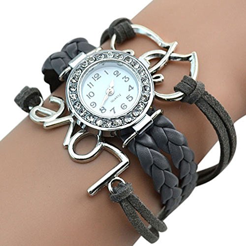 Die Mädchen Stricken Kunstleder Band Liebes Herz Charment Glass Armbanduhr Dunkelbrau Details
