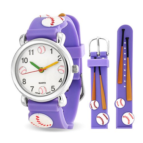 Bling Jewelry Lila Analog Baseball Sport Kinder Armbanduhr mit Edelstahl Hinter ist nur eines der Arten von Uhr, die so sein könnte ein Wahl für Ihr Youngster