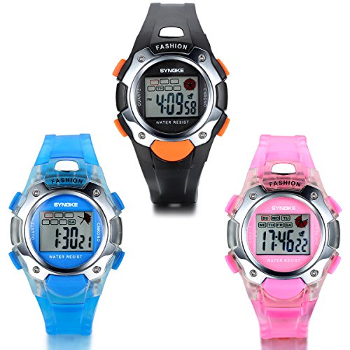 JewelryWe 3pcs Kinder Armbanduhr, Mädchen Jungen Digital Elektronische Sport Uhren Schule Uhr mit Silikon Armband, Blau Pink Schwarz ist nur eines der Arten von Uhr, die so sein könnte ein Wahl für Ihr Kind