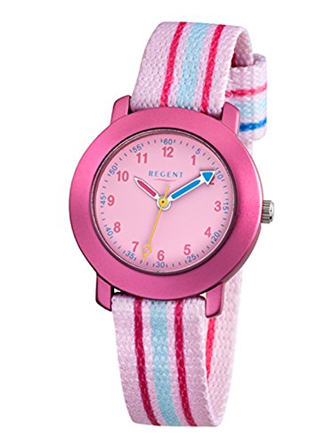 REGENT Kinderarmbanduhr Streifen. ... Rosa Uhr für Kinder von Regent. 29,90 € * Regent Kinderuhr F939 Textilband braun analog Kids 12400235.