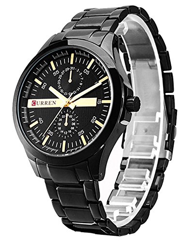 Die ufengke® mode wasserdicht automatische elektronische quarz armbanduhren für männer/jungen-schwarzes band schwarzes zifferblatt, dekorative kleine Zifferblätter Details