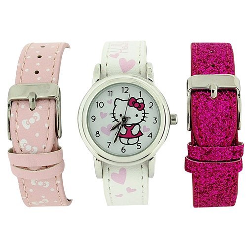 Hello Kitty Mädchenuhr, weißes Zifferb., 3 austauschbare Uhrbänder Set zählt der Arten von Uhr, die so sein könnte ein Option für Ihr Kind